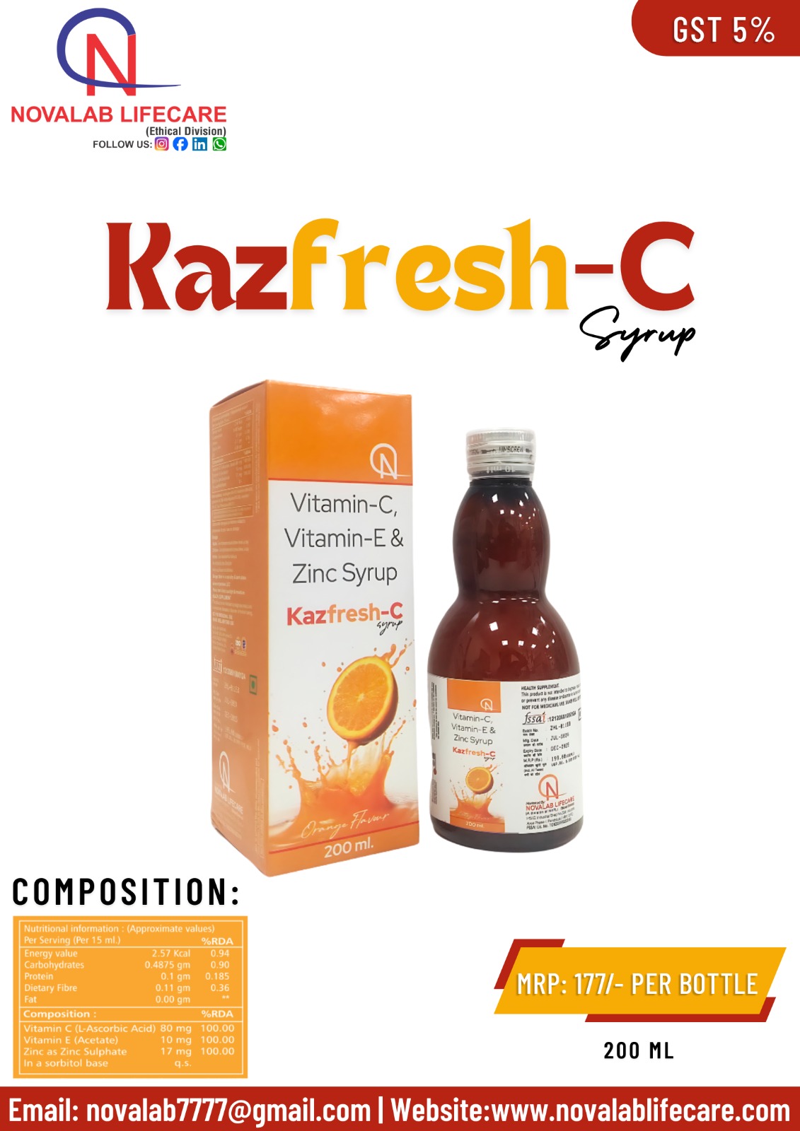 Kazfresh-C Syrup is more than just a vitamin supplement; it is a daily commitment to your well-being. With the combined strength of Vitamin C, Vitamin E, and Zinc, you are giving your body the tools it needs to stay strong, look great, and feel energetic.